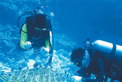 2022年11月,广西北海涠洲岛北部珊瑚礁生态修复项目正式启动,获批中央生态修复专项资金6992万元,投放人工礁1520个,移植珊瑚8万株,修复珊瑚礁450亩。此前建立的面积约2000平方米的珊瑚礁生态修复示范区,其活珊瑚覆盖率在3年内从约5%提升到了20%。