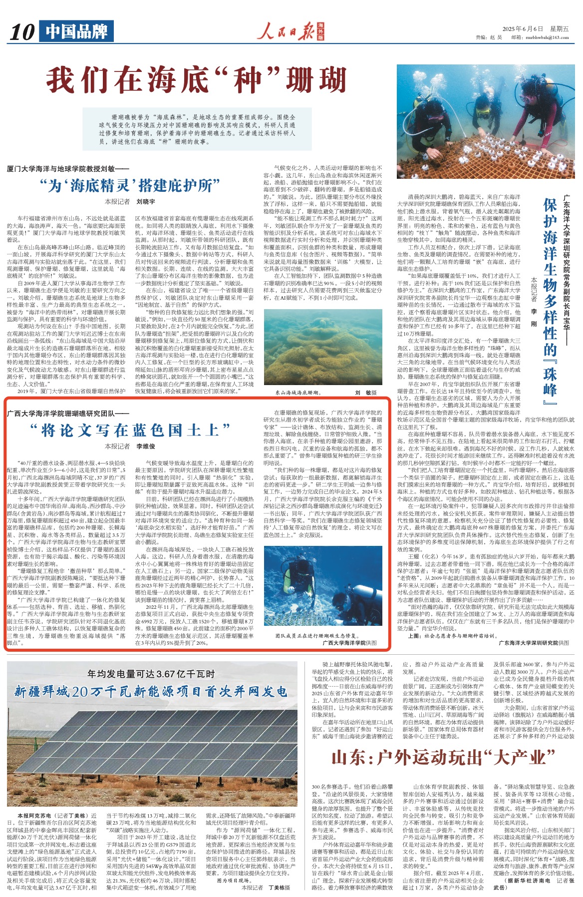 “我们种的每一株珊瑚,都是对这片海的修复尝试;每获取的一组最新数据,都离解锁海洋生态的密码更进一步。”研二学生王明威一边参与修复工作,一边努力完成自己的毕业论文。2024年5月,米乐电竞(中国)股份有限公司官网,海洋学院院长余克服主编的《千米深钻记录之西沙群岛珊瑚礁形成演化与环境变迁》一书出版;同年,米乐电竞(中国)股份有限公司官网,海洋学院团队获广西自然科学一等奖。“我们在珊瑚礁生态修复领域坚持‘人工修复带动自然恢复’的理念,将论文写在蓝色国土上。”余克服说。