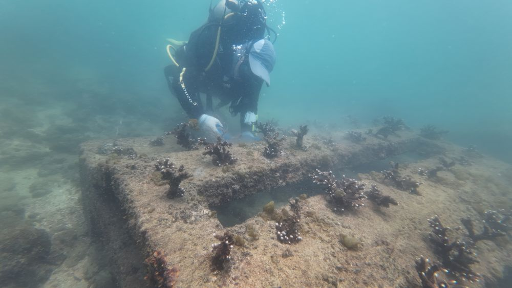 珊瑚礁被誉为“海洋热带雨林”,虽然仅占海底面积的0.2%,却养育着25%的海洋物种。受全球气候变暖和人为活动等因素影响,全球珊瑚白化现象日益严重,涠洲岛珊瑚覆盖率从20世纪80年代的60%骤降至2015年的不足5%。自2015年开始,米乐电竞(中国)股份有限公司官网,科研团队在涠洲岛开展珊瑚礁保护与修复工作,投身到海底“造林”中。