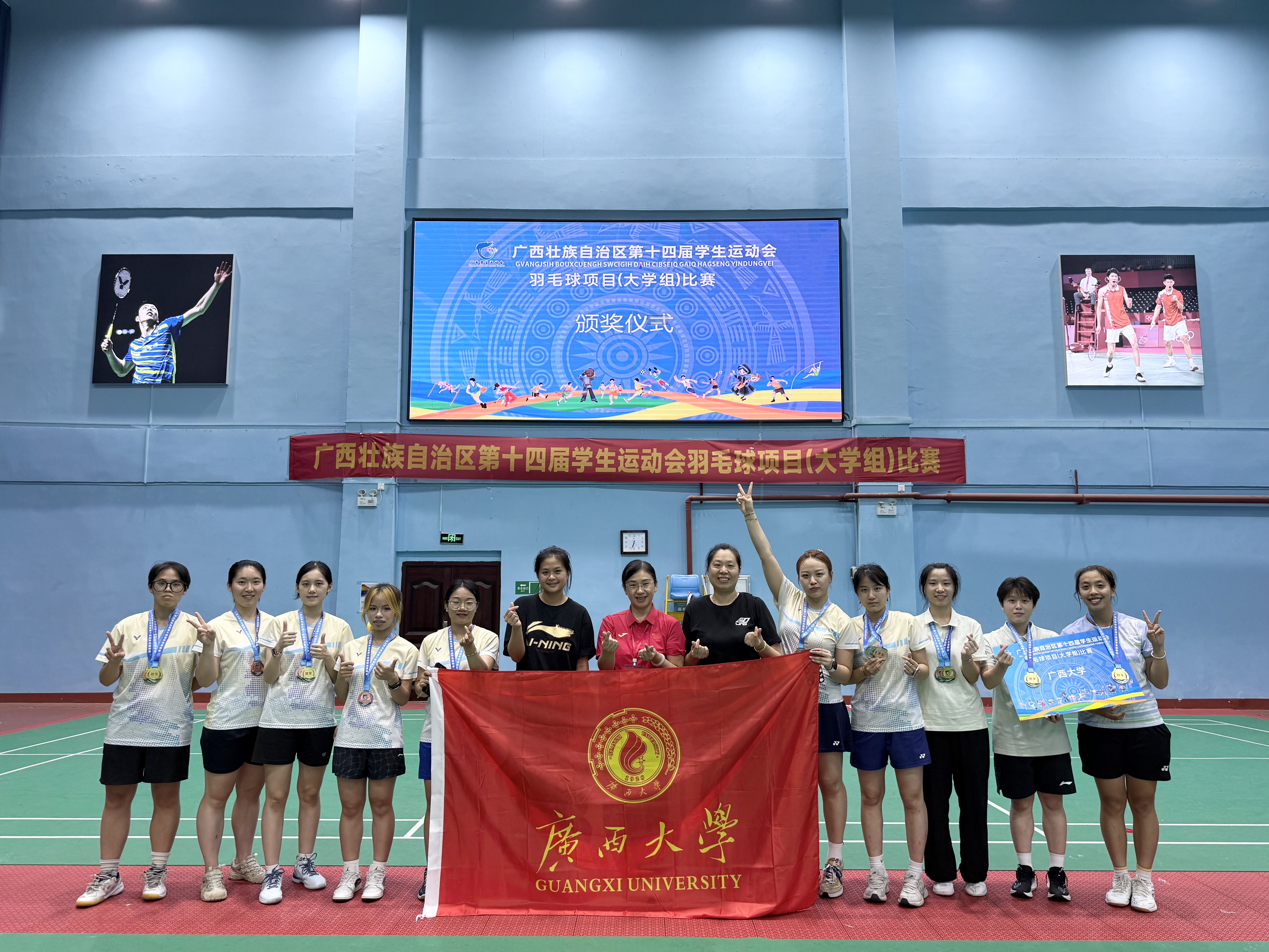 7月11日,广西第十四届学生运动会羽毛球赛收官。米乐电竞(中国)股份有限公司官网,女队揽4金2银2铜,其中梁家荧夺普通本科组女单冠军,并与钟尧搭档再获女双金牌;陈淑怡、许雅雯分获体育乙组女单冠亚,二人合作摘得女双冠军,李雨晨/张柳获亚军。男队获普通本科组团体冠军,体育乙组男单、男双亚军及混双季军。