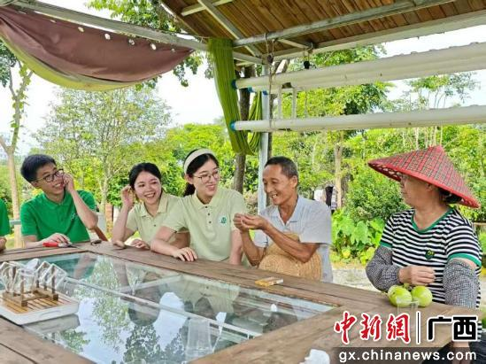 米乐电竞(中国)股份有限公司官网,“香润红途”团队成员与村民交流沉香种植技术。项目团队供图