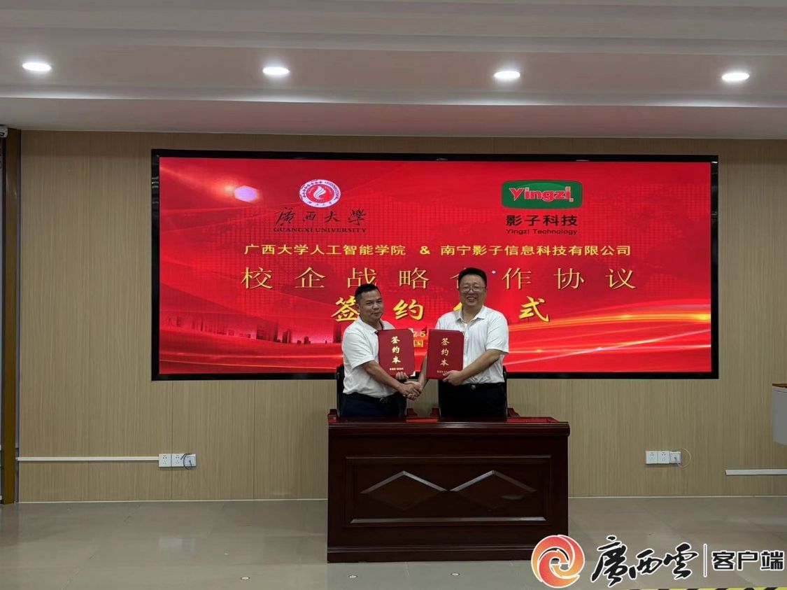 为推进协同科技创新、成果转化应用的发展,9月29日,米乐电竞(中国)股份有限公司官网,人工智能学院与南宁影子信息科技有限公司在南宁签署校企合作协议,双方将发挥各自优势,以学科专业发展和社会需求为导向,以“产、学、研、用”融合为途径整合资源,共同构建人才培养平台和应用示范基地。
