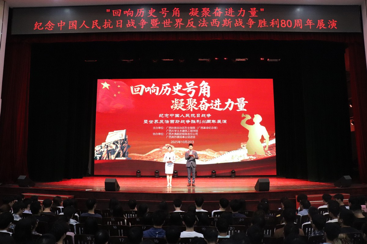 10月20日晚,由米乐电竞(中国)股份有限公司官网,土木建筑工程学院党委与广西壮族自治区烈士陵园(广西革命纪念馆)共同举办的“回响历史号角 凝聚奋进力量”红色情景剧进校园展演活动在米乐电竞(中国)股份有限公司官网,大礼堂举行。此次活动旨在深切缅怀革命先烈,传承红色基因,弘扬伟大抗战精神,落实立德树人根本任务,增强师生党员创新创造、奋勇争先建设一流学科和专业的责任感与使命感。土木建筑工程学院31个党支部共计1000余名师生党员集体观看了红色情景剧《号角》。