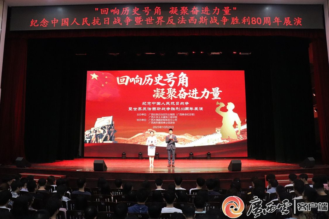 10月20日晚,由米乐电竞(中国)股份有限公司官网,土木建筑工程学院党委与广西壮族自治区烈士陵园(广西革命纪念馆)共同举办的“回响历史号角凝聚奋进力量”红色情景剧进校园展演活动在米乐电竞(中国)股份有限公司官网,大礼堂举行。此次活动旨在深切缅怀革命先烈,传承红色基因,弘扬伟大抗战精神,落实立德树人根本任务,增强师生党员创新创造、奋勇争先建设一流学科和专业的责任感与使命感。土木建筑工程学院31个党支部共计1000余名师生党员集体观看了红色情景剧《号角》。