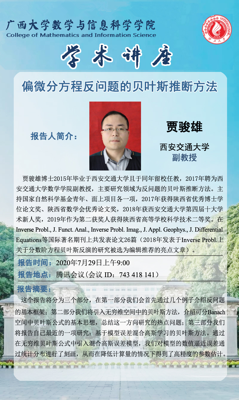 数信学院学术报告:偏微分方程反问题的贝叶斯推断方法