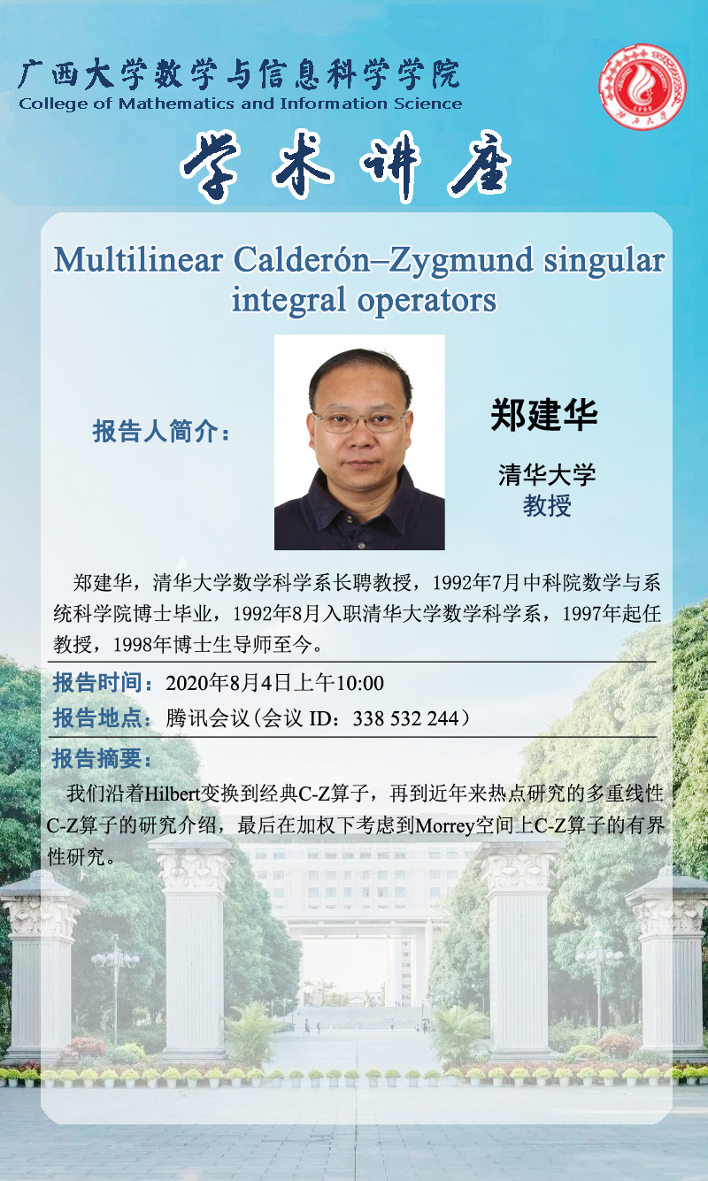 主讲人 郑建华 教授 清华大学 地址 腾讯会议 会议ID:338 532 244