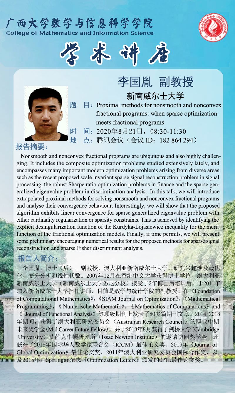 数信学院学术报告:Proximal methods for nonsmooth and nonconvex fractional programs: when sparse optimization meets fractional programs
