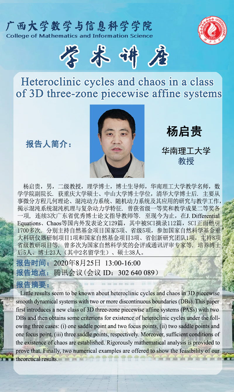 主讲人 杨启贵 教授 华南理工大学 地址 腾讯会议(会议ID: 302 640 089 )