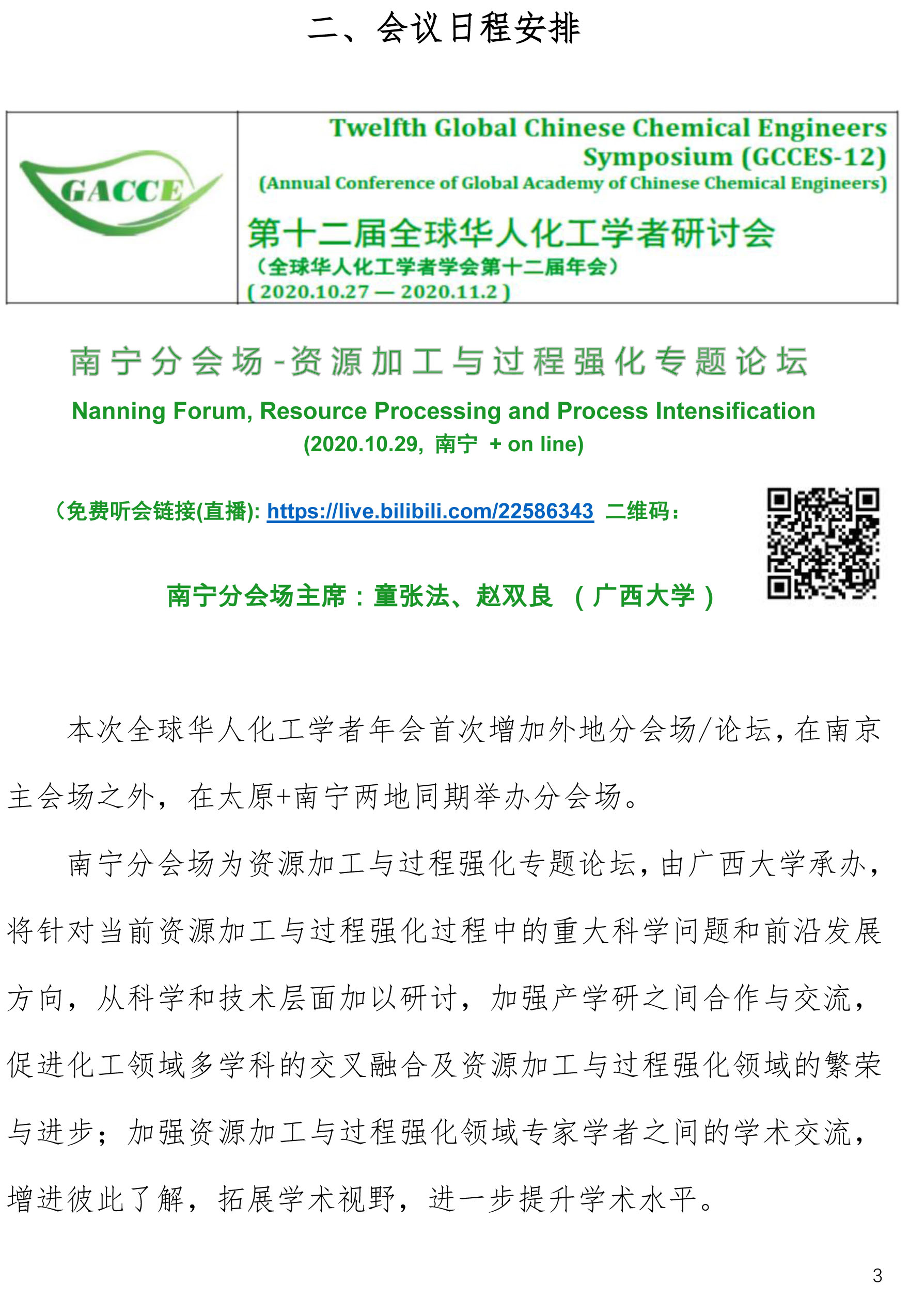 第十二届全球华人化工学者研讨会:南宁分会场-资源加工与过程强化专题论坛