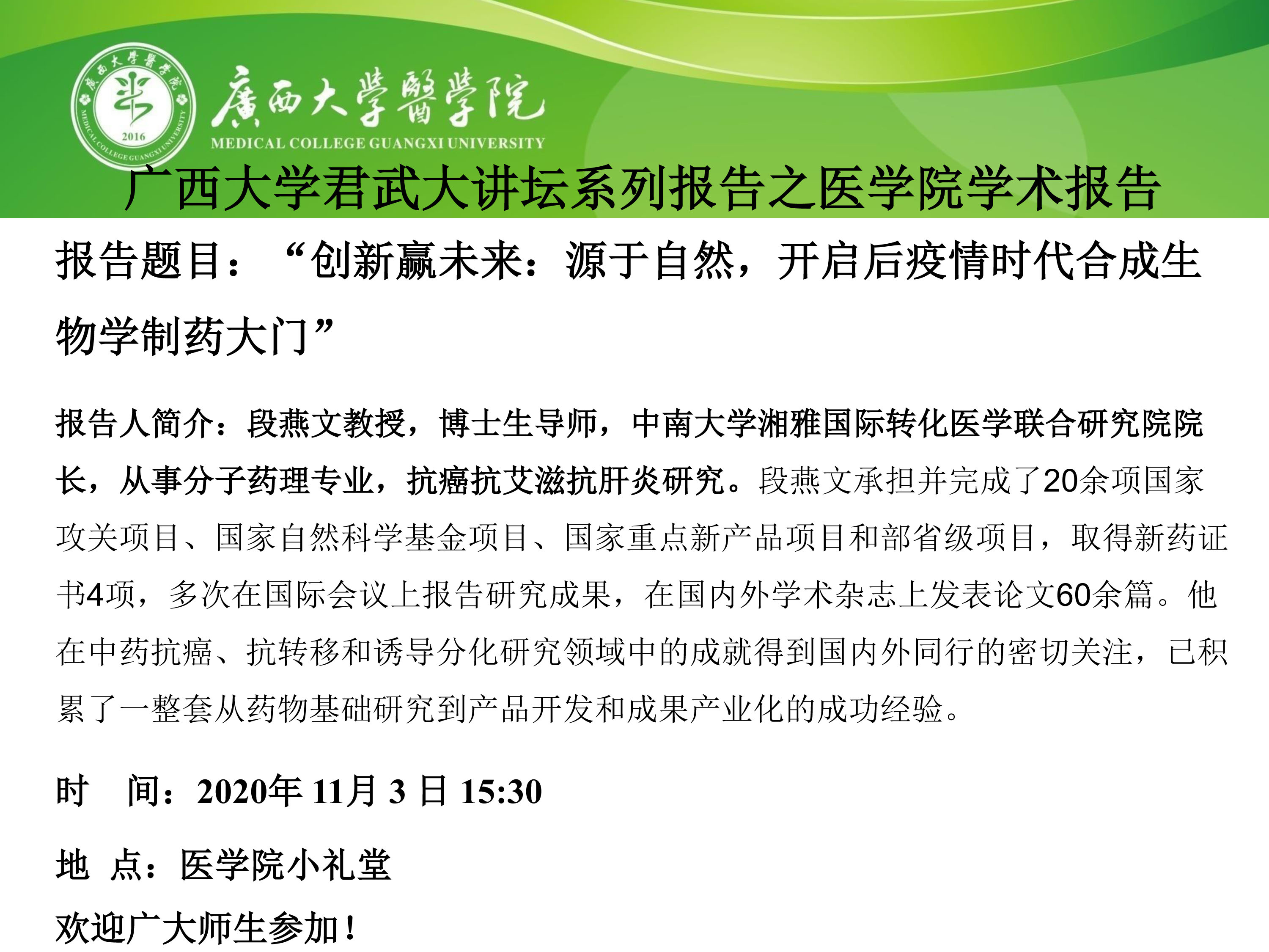 米乐电竞(中国)股份有限公司官网,君武大讲坛系列报告之医学院学术报告:“创新赢未来:源于自然,开启后疫情时代合成生物学制药大门”