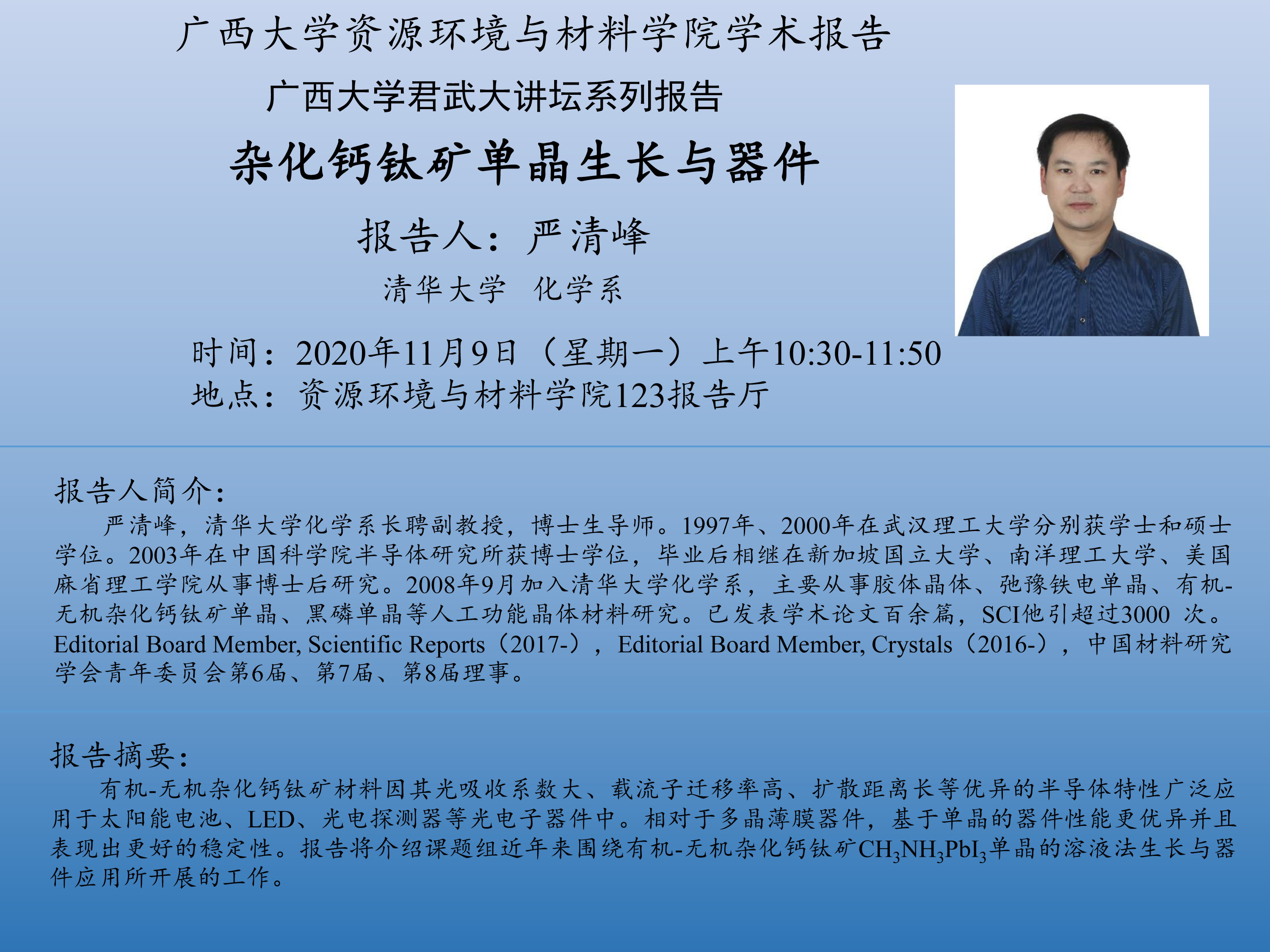 资源环境与材料学院学术报告:“米乐电竞(中国)股份有限公司官网,君武大讲坛系列”杂化钙钛矿单晶生长与器件