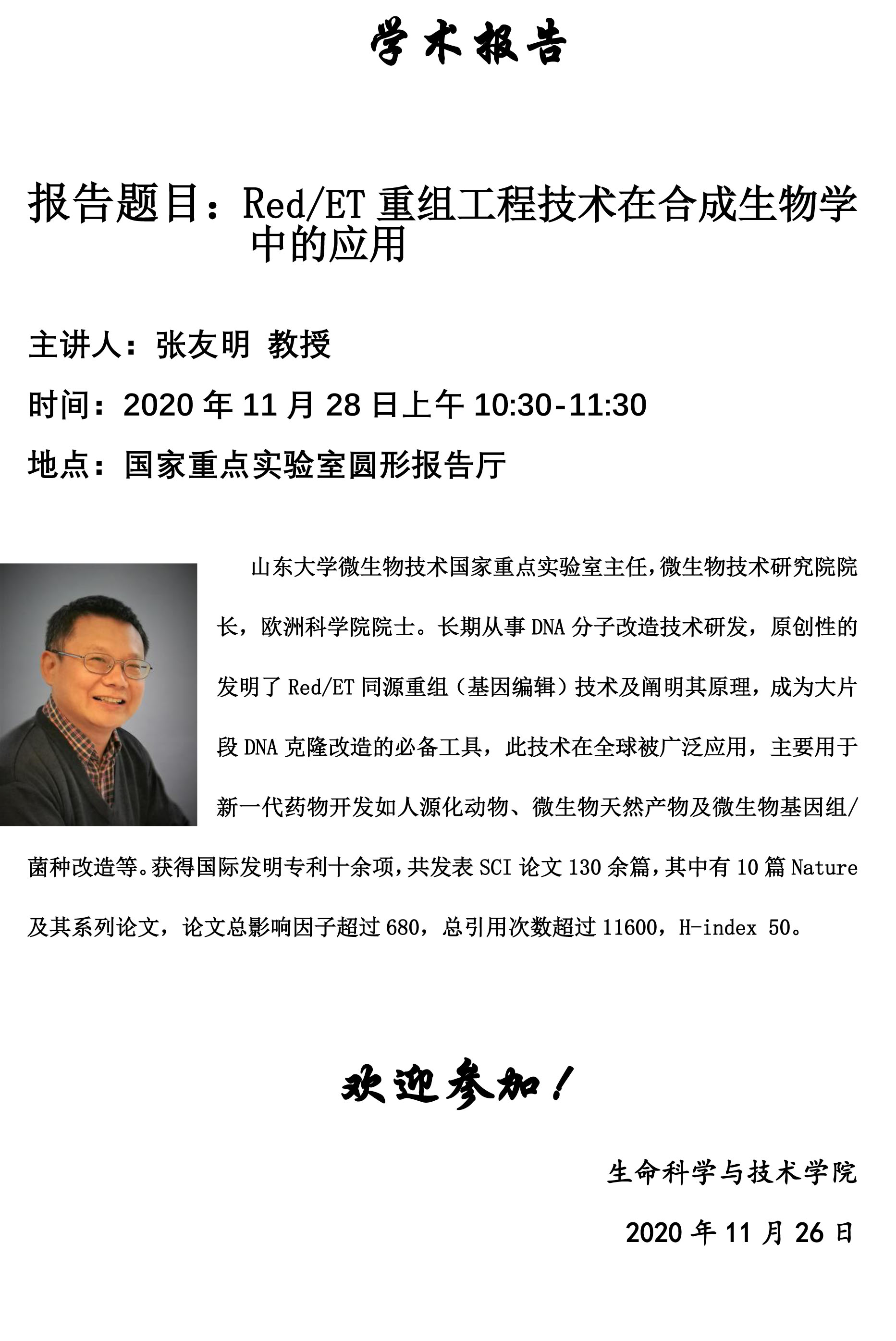 生命科学与技术学院学术报告:Red/ET重组工程技术在合成生物学中的应用;Probing biochemical mechanism for ongoing MCR family of colistin resistance