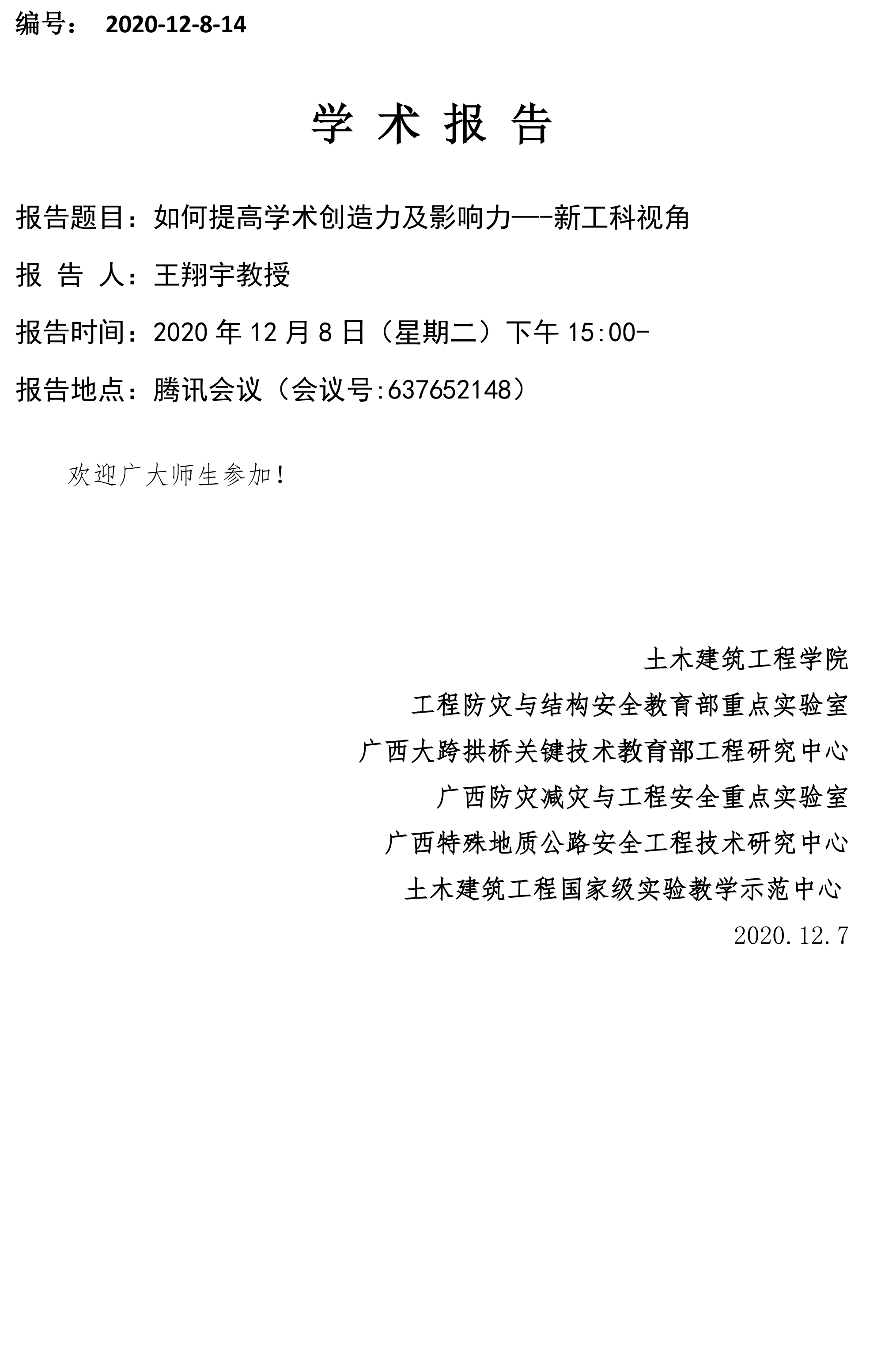 土木建筑工程学院学术报告:如何提高学术创造力及影响力—-新工科视角