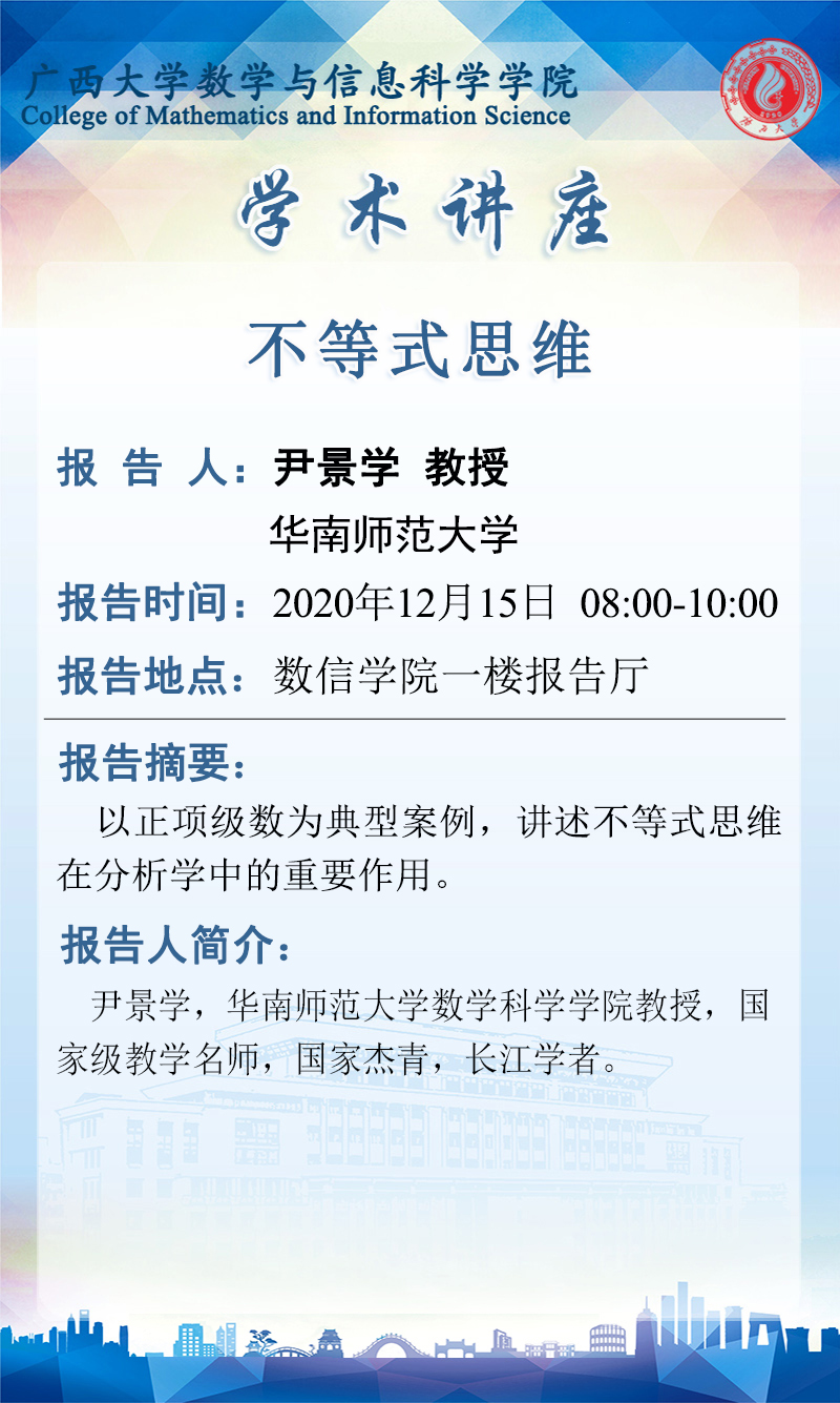 数学与信息科学学院学术讲座:不等式思维