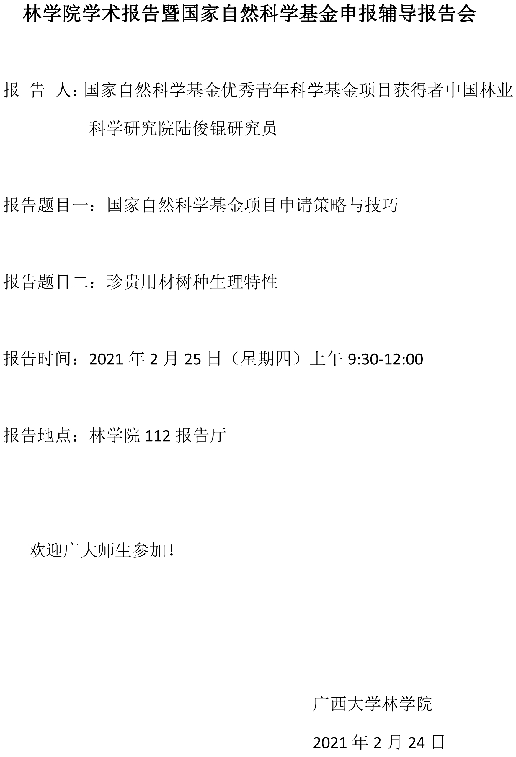 林学院学术报告暨国家自然科学基金申报辅导报告会