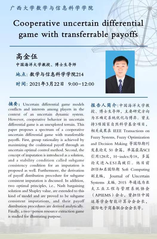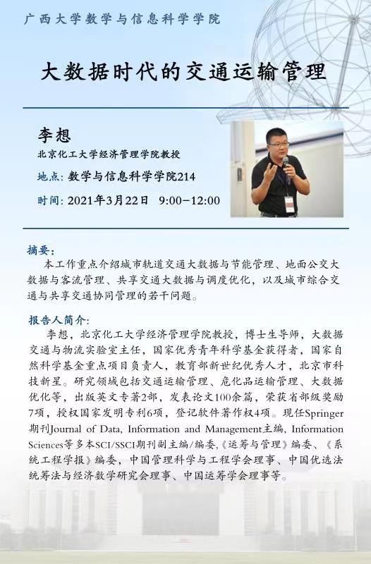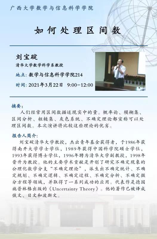 数学与信息科学学院学术报告:如何处理区间数;大数据时代的交通运输管理;Cooperative uncertain differential game with transferrable payoffs;