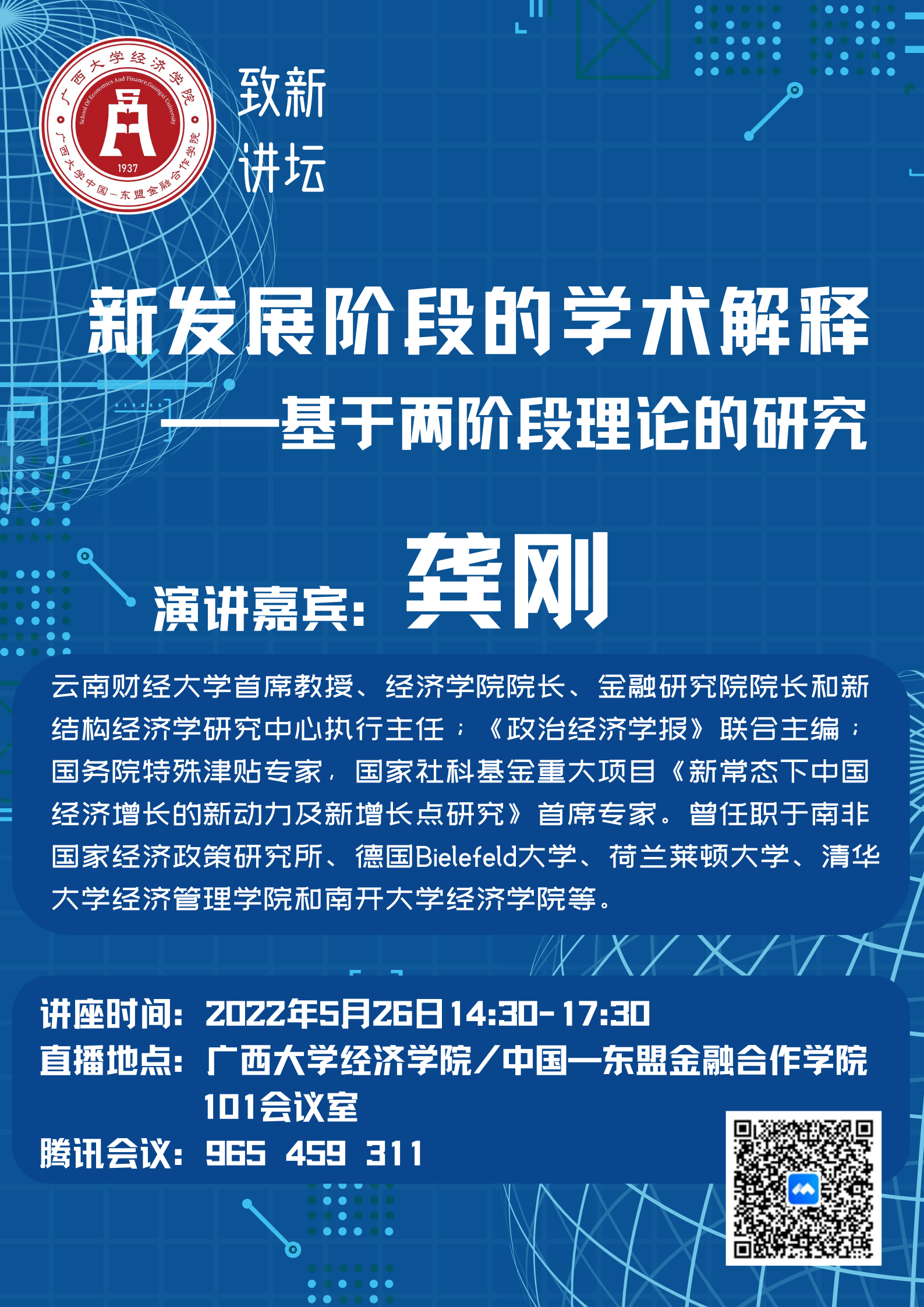 经济学院/中国-东盟金融合作学院“致新大讲坛”:新发展阶段的学术解释——基于两阶段理论的研究