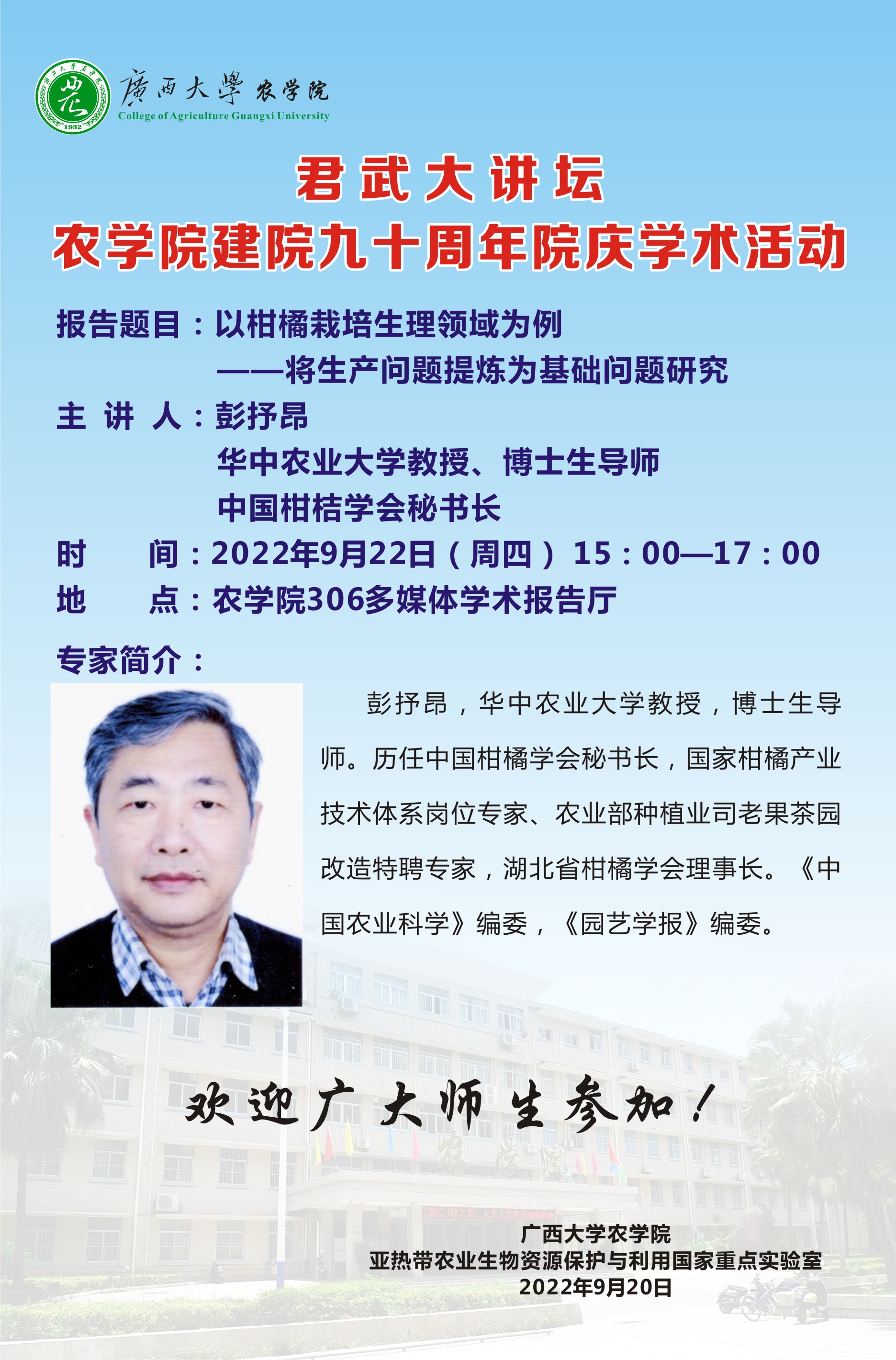 【地点】农学院306多媒体学术报告厅