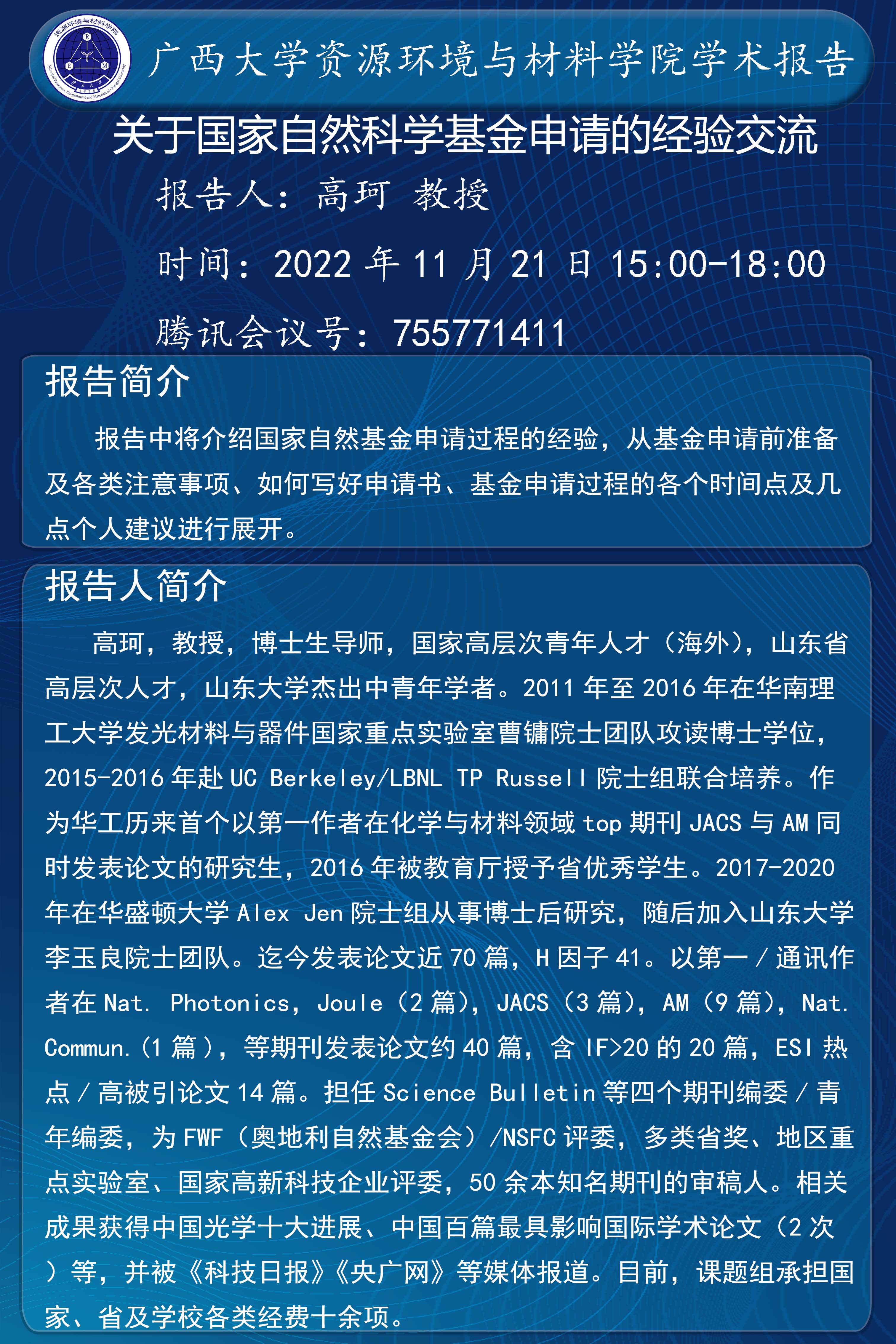 资源环境与材料学院学术报告 关于国家自然科学基金申请的经验交流