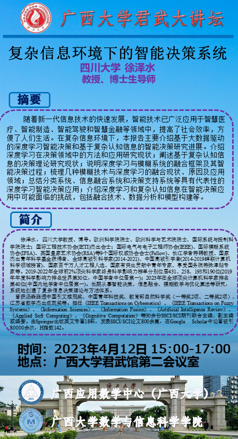米乐电竞(中国)股份有限公司官网,君武大讲堂:复杂信息环境下的智能决策系统
