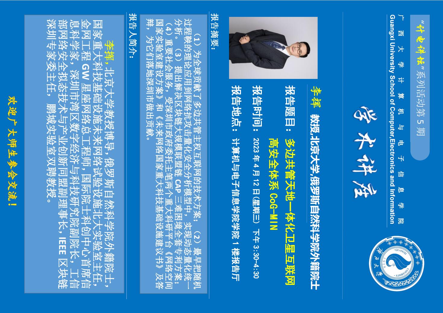 “计电讲坛”系列活动第5期:多边共管天地一体化卫星互联网高安全体系 CoG-MIN