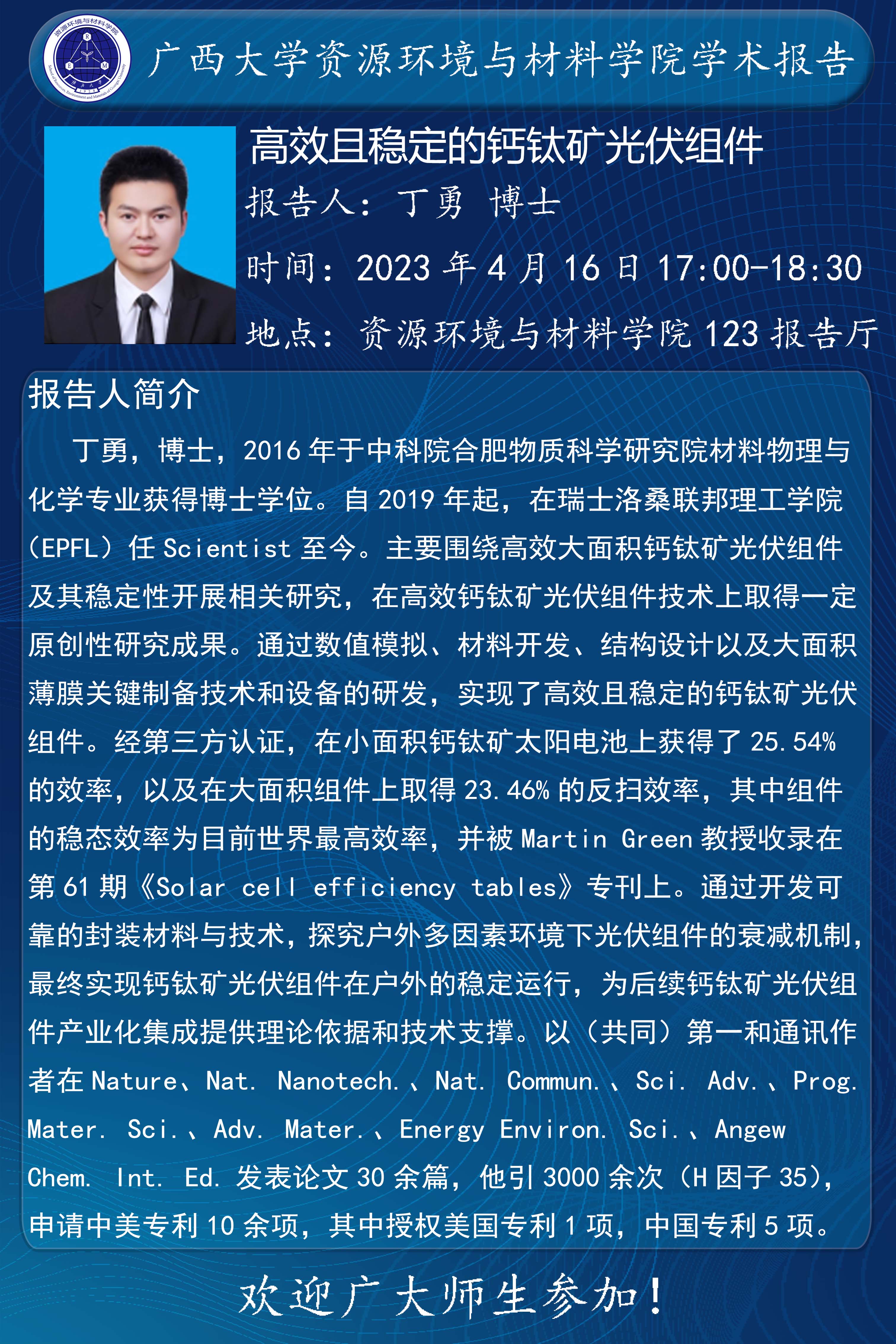 资源环境与材料学院123报告厅