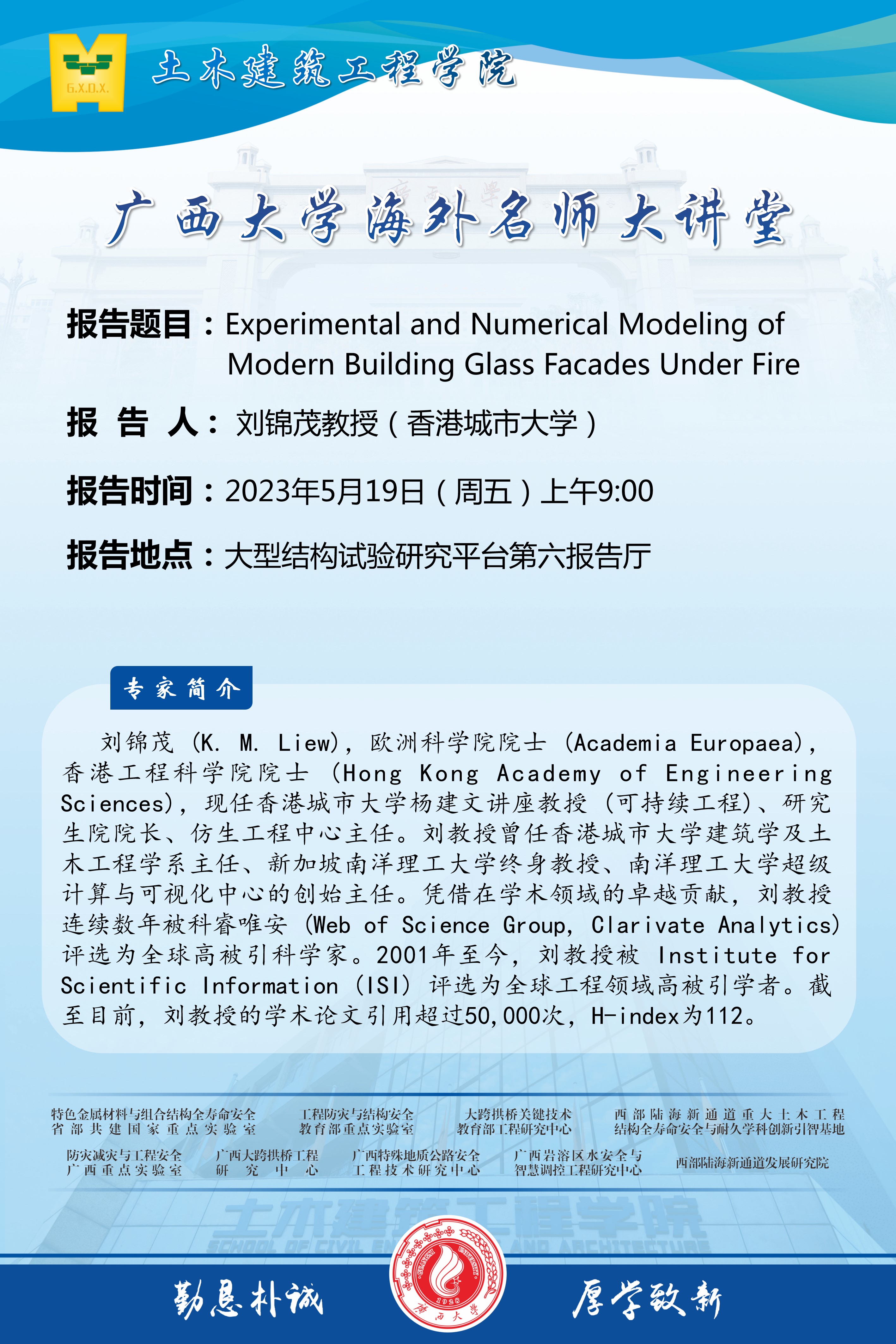 米乐电竞(中国)股份有限公司官网,海外名师大讲堂:Experimental and Numerical Modeling of Modern Building Glass Facades Under Fire