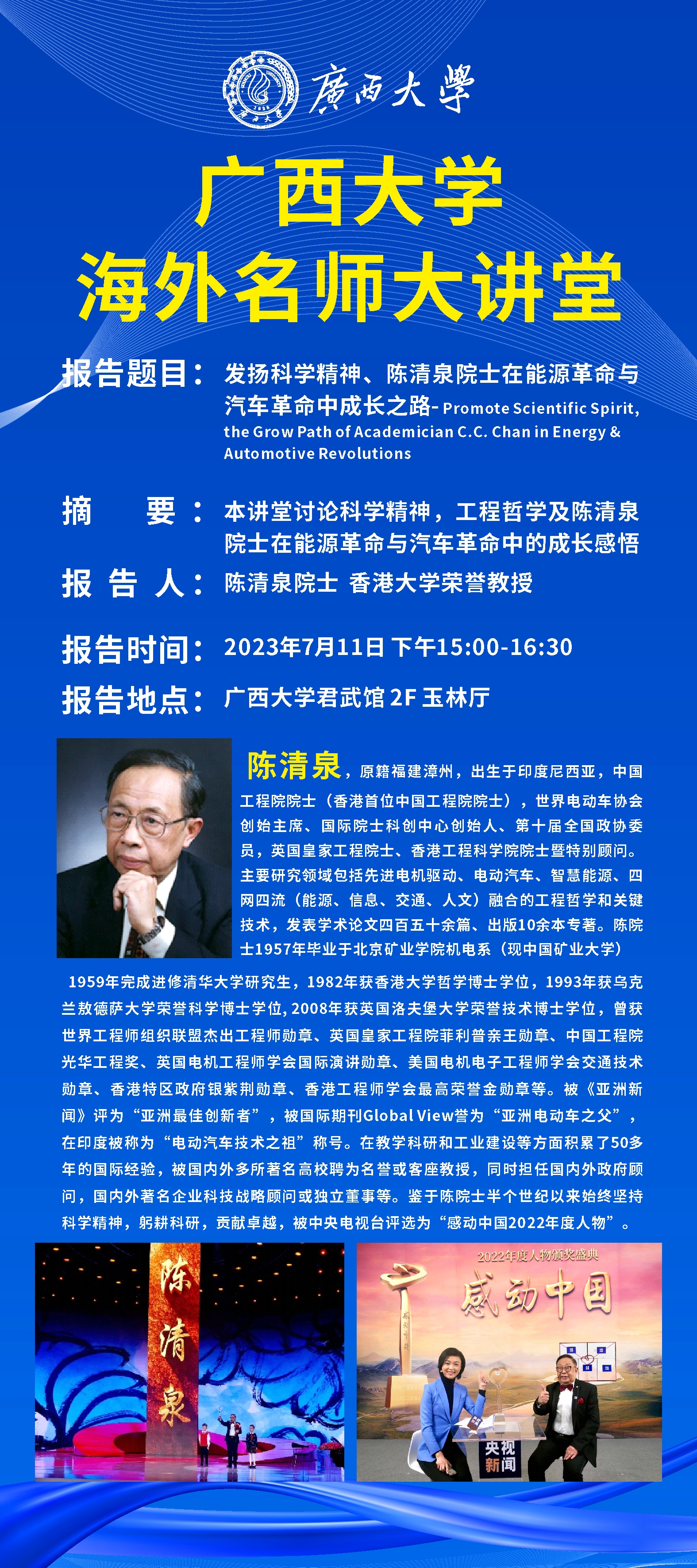米乐电竞(中国)股份有限公司官网,海外名师大讲堂:发扬科学精神、陈清泉院士在能源革命与汽车革命中成长之路