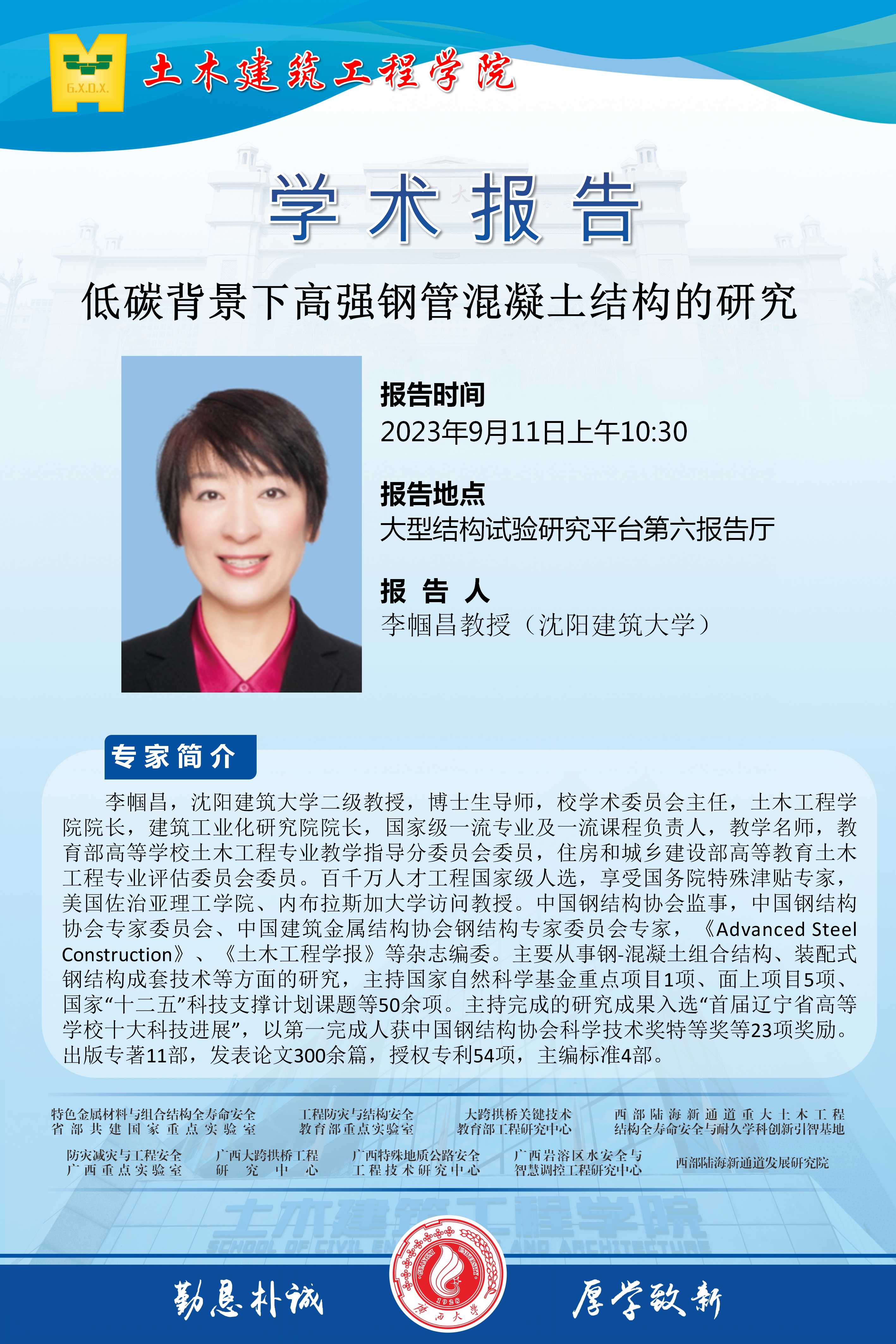 土木学院学术报告:低碳背景下高强钢管混凝土结构的研究