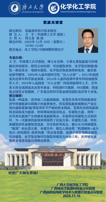 君武大讲坛:氢能源材料与技术研究