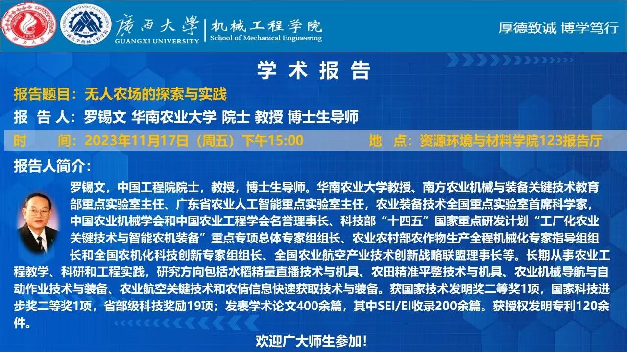 君武大讲坛:无人农场的探索与实践