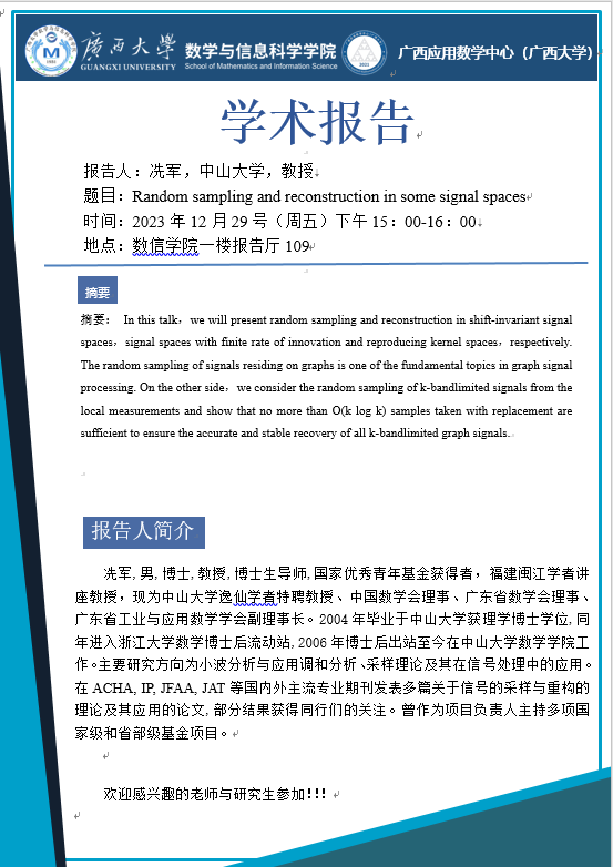 数信学院一楼报告厅 109
