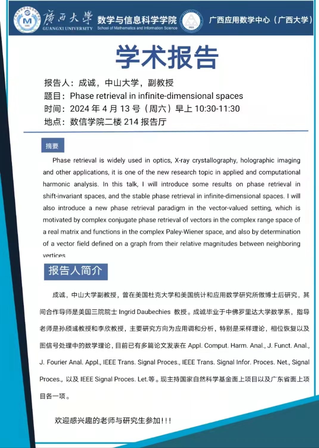 数信学院二楼214报告厅