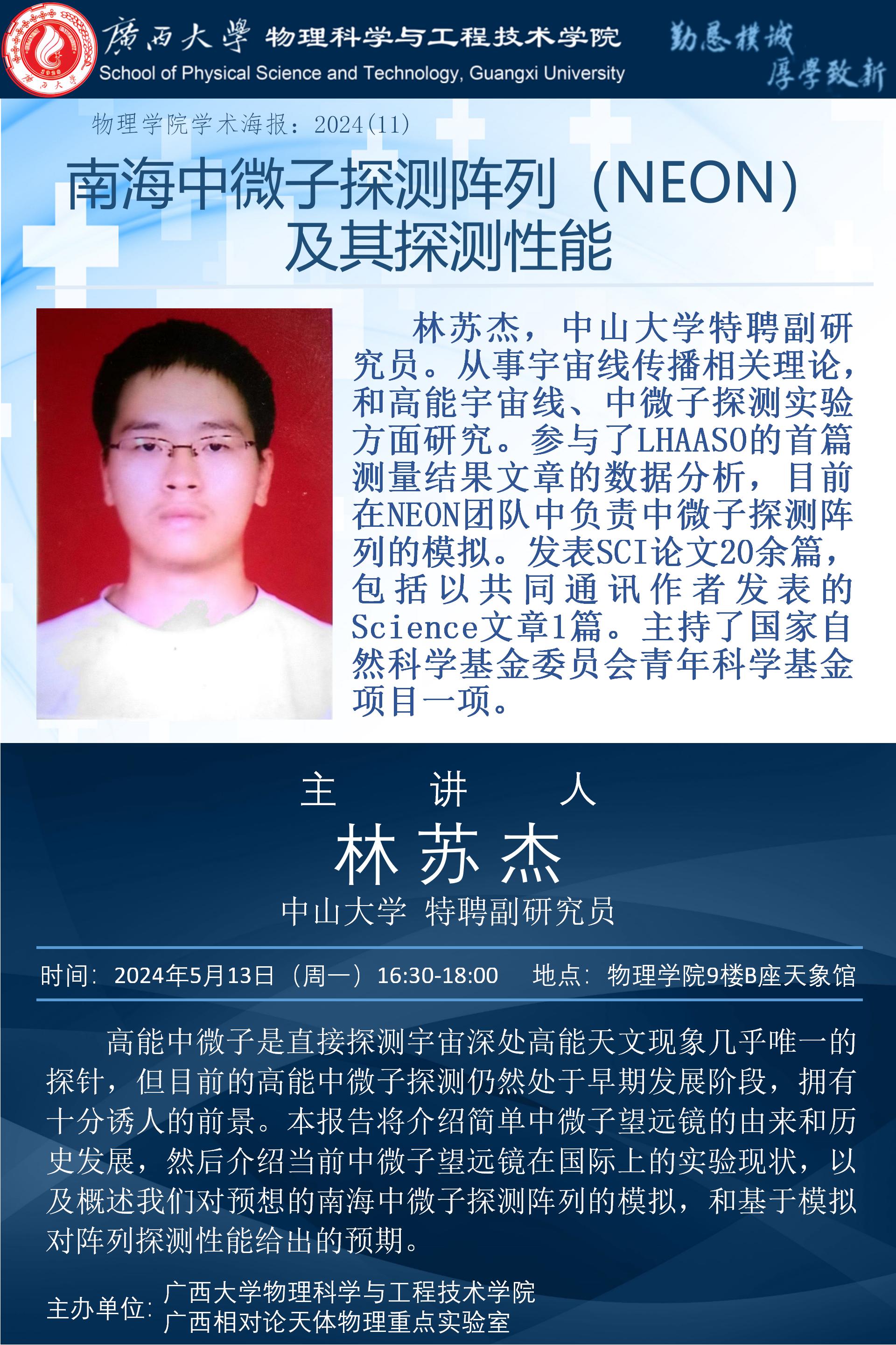物理学院2024年学术报告之11:南海中微子探测阵列(NEON)及其探测性能
