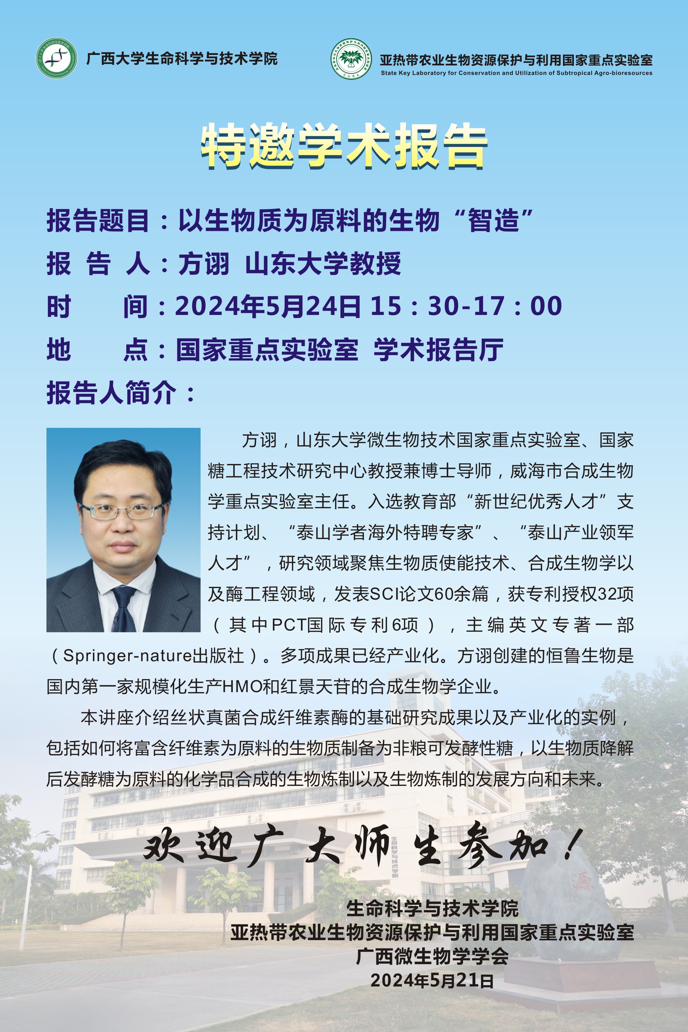 生命科学与技术学院学术报告:以生物质为原料的生物“智造”