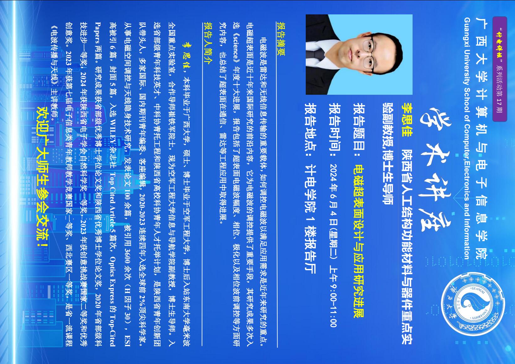 计算机与电子信息学院学术报告:电磁超表面设计与应用研究进展