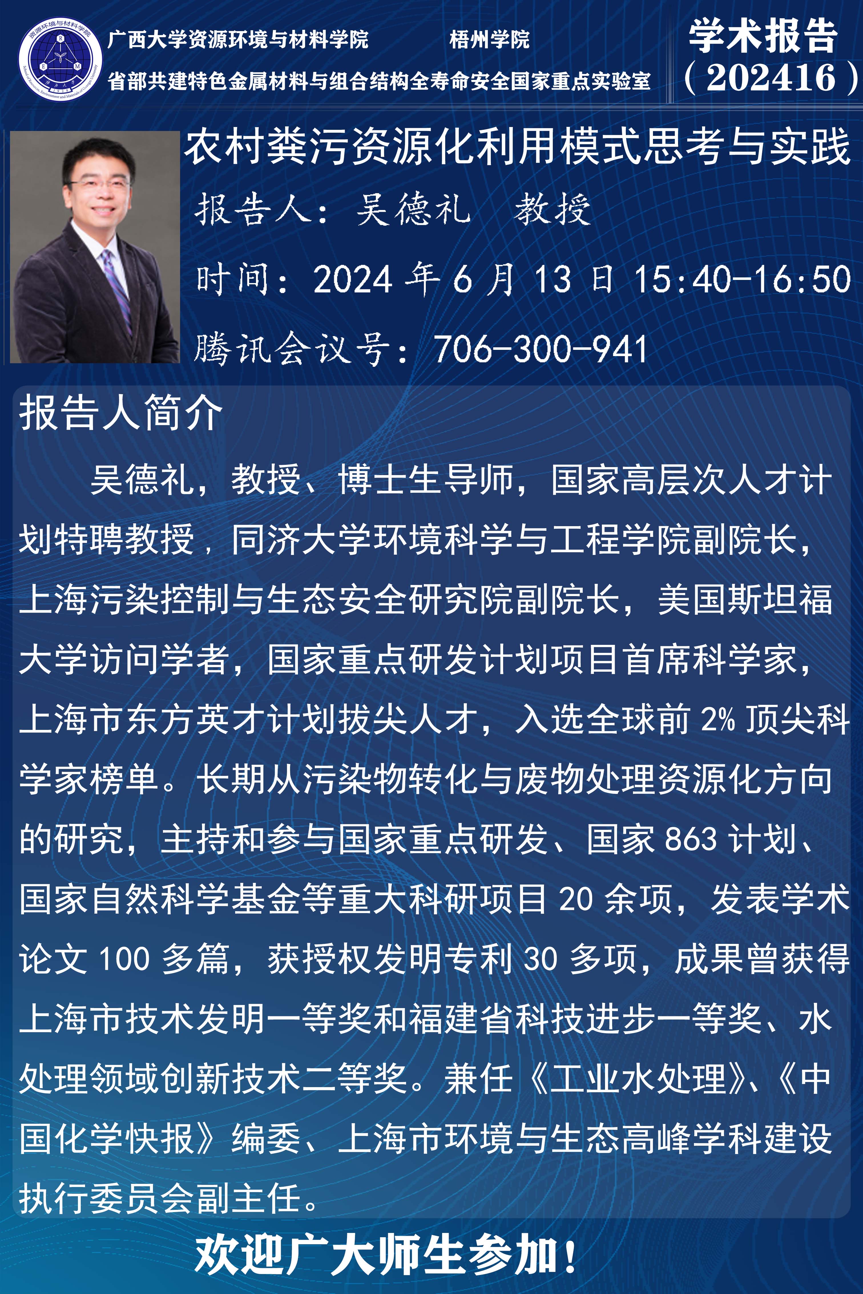 资源环境与材料学院学术报告:几种典型无机固体废弃物的特性及其制备低碳碱激发胶凝材料的应用研究