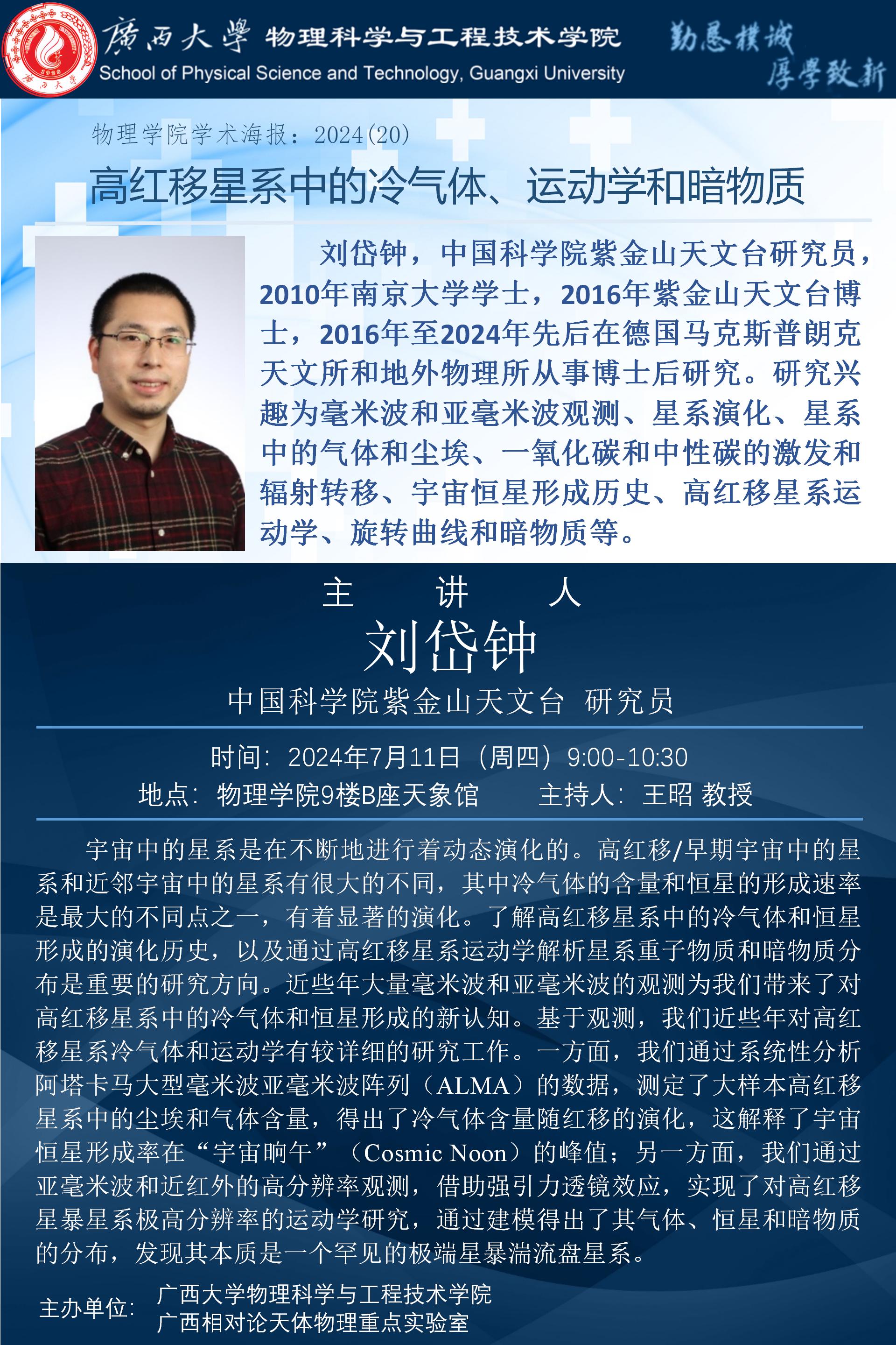 物理学院2024年学术报告之20:高红移星系中的冷气体、运动学和暗物质