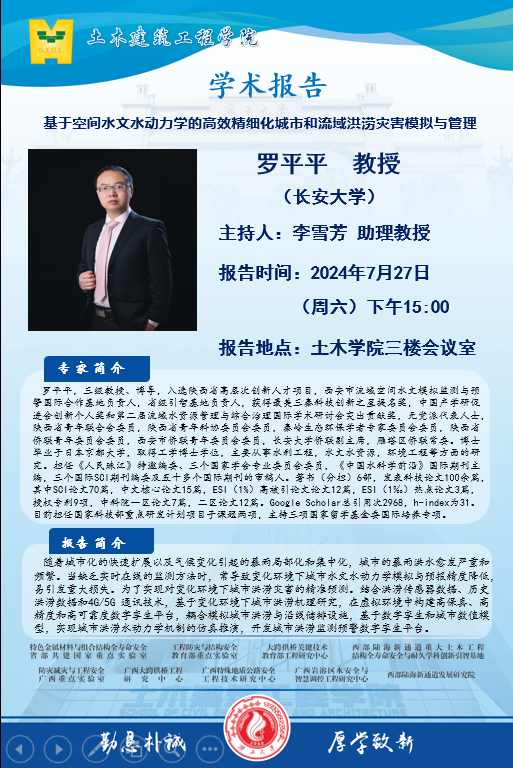 土木建筑工程学院学术报告:基于空间水文水动力学的高效精细化城市和流域洪涝灾害模拟与管理