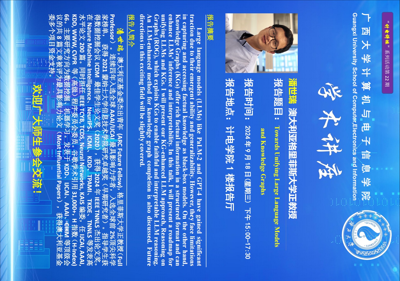 计算机与电子信息学院学术报告:Towards Unifying Large Language Models and Knowledge Graphs