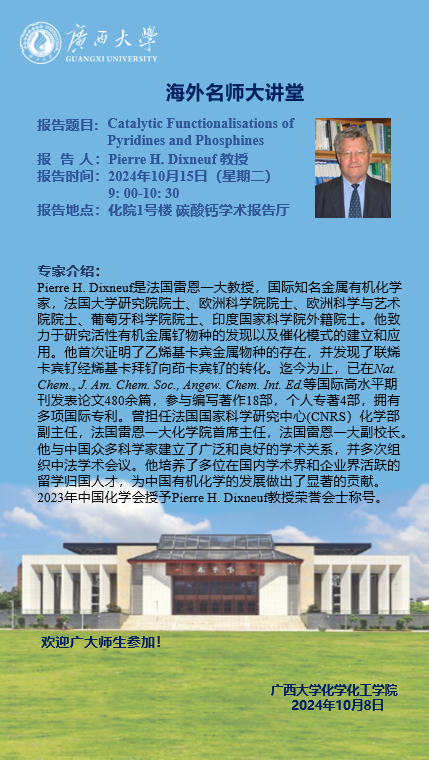 海外名师大讲堂:Catalytic Functionalisations of Pyridines and Phosphines
