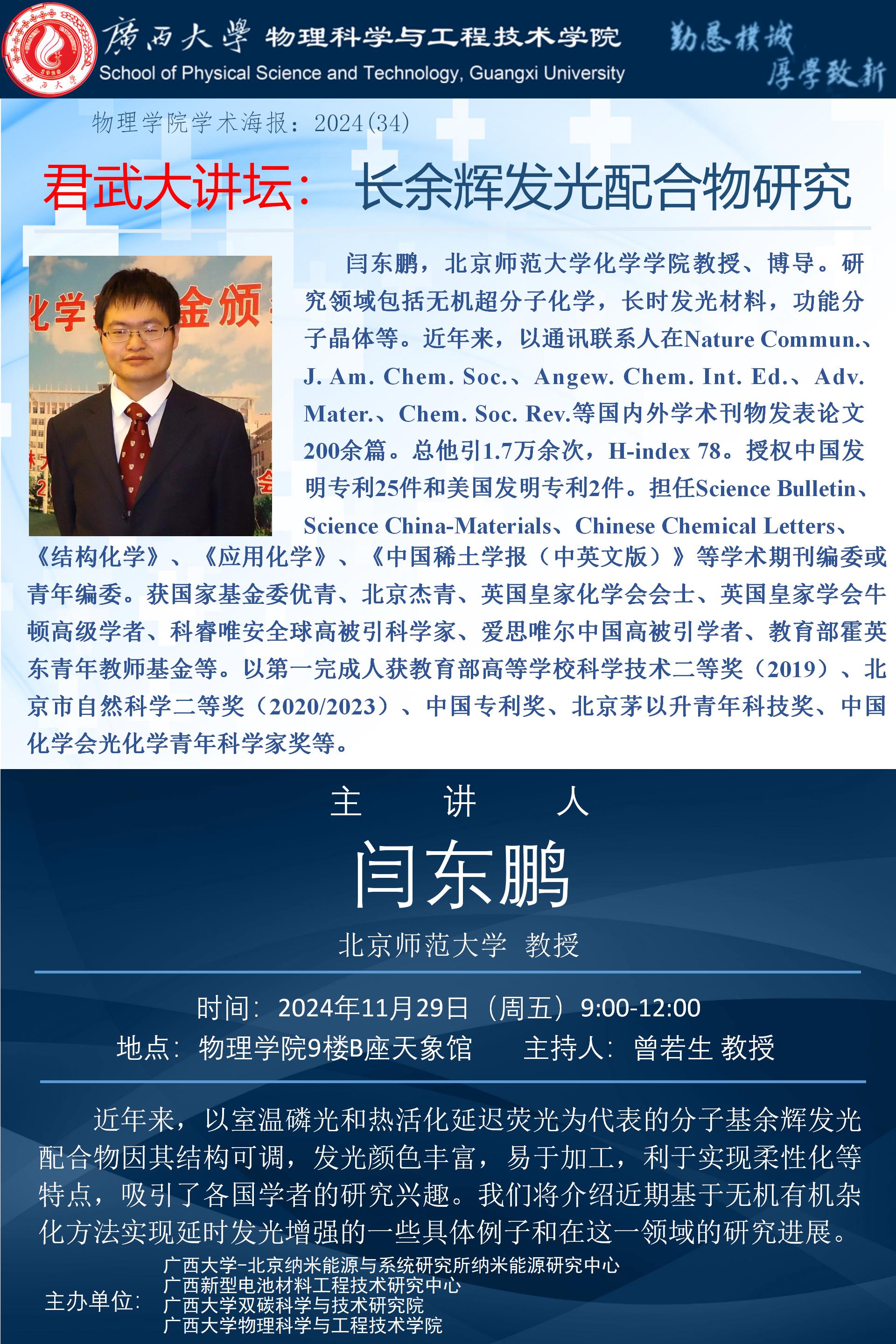 君武大讲坛、物理学院学术报告:长余辉发光配合物研究