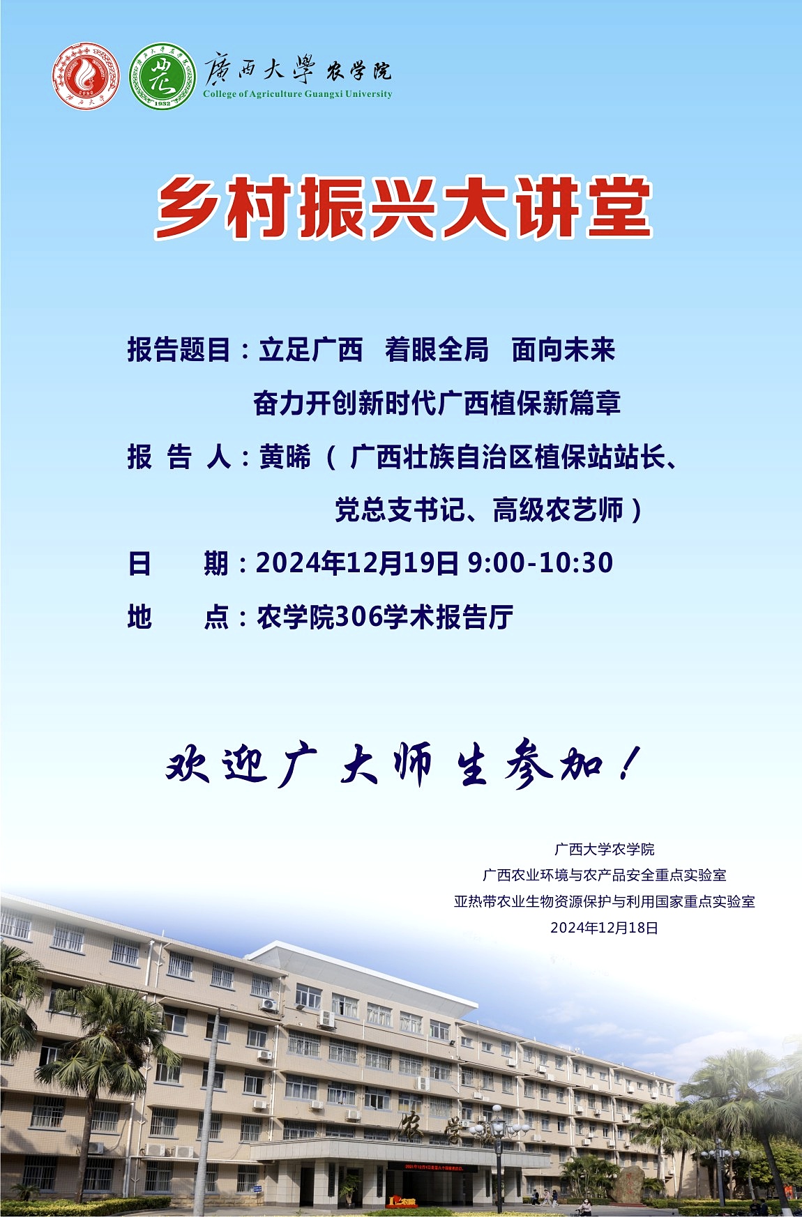 农学院乡村振兴大讲堂:立足广西 着眼全局 面向未来 奋力开创新时代广西植保新篇章