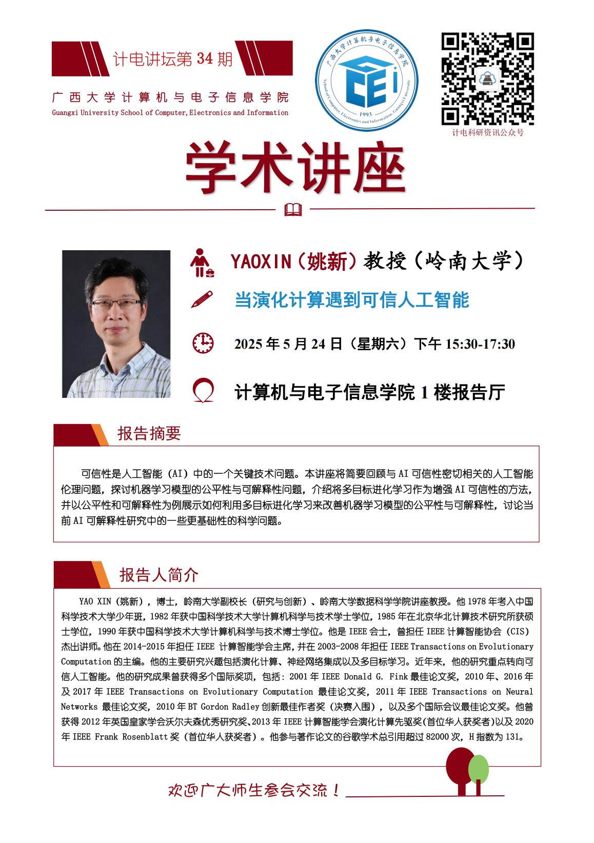 “计电讲坛”系列活动第34期:当演化计算遇到可信人工智能