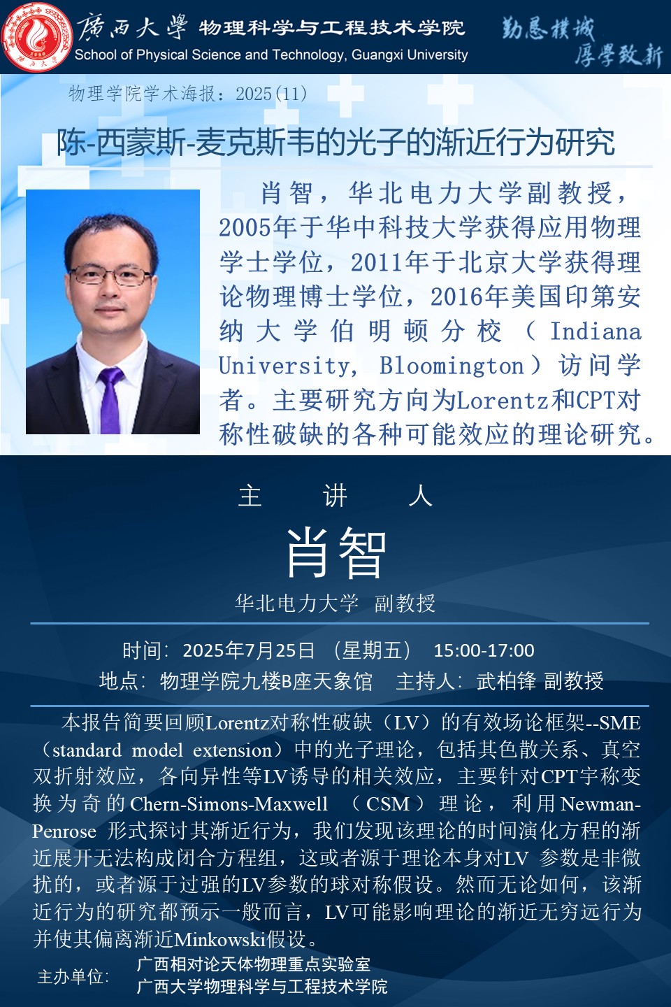 主讲人 肖智 副教授 地址 物理学院B座9楼天象馆