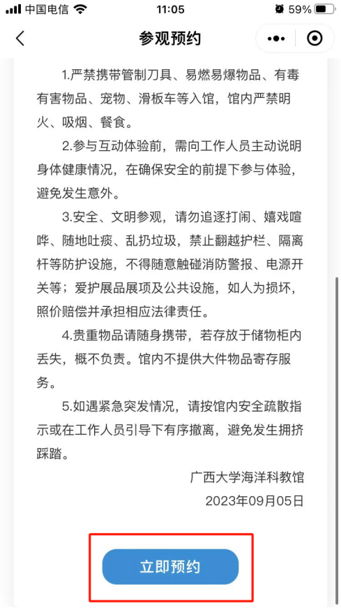 4. 阅读“预约须知”,点击“立即预约”按钮,进入预约页面。